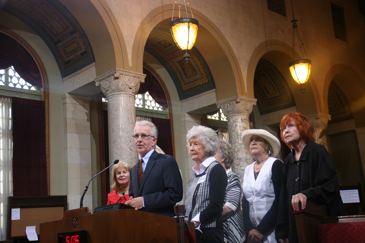(Photo above includes from left; Councilmember Curren D. Price, Jr., Nancie Gilbert, Rita Zwern, Elaine Koonse, Councilmember Krekorian, Flip Manne, Lois Saffian, Terry Lloyd, and Council President Herb Wesson.)